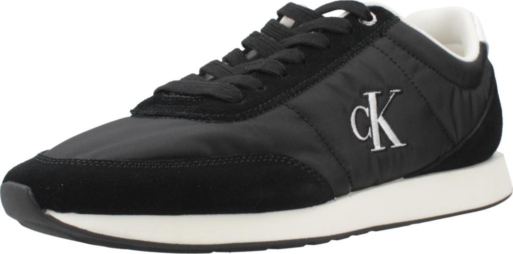 Calvin Klein Jeans RETRO RUNNER ESS MIX MAT Sneaker Runner-Sneaker, Freizeitschuh, Halbschuh mit seitlichem CK-Logo (schwarz/weiß)
