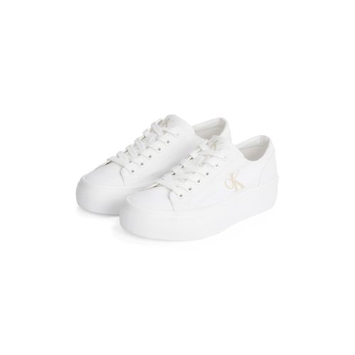 Calvin Klein Jeans VULC FLATFORM LOW CV MG Plateausneaker Schnürschuh, Freizeitschuh, Halbschuh mit seitlichem Logo (weiß)
