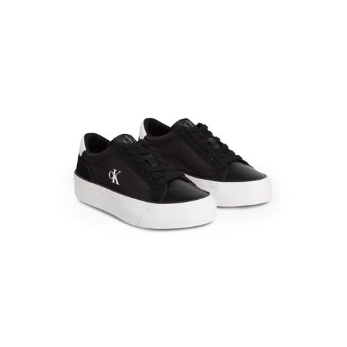 Calvin Klein Jeans VULC FLATFORM MG NYLON MIX Plateausneaker Schnürschuh, Halbschuh, Freizeitsneaker mit softem Schaftrand (schwarz/weiß)
