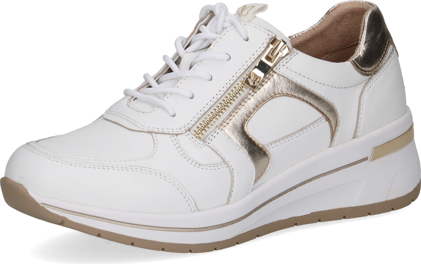 Damen - Sneaker aus Leder/Synthetik in weiß/gold mit Reißverschluss +, Schnürung und Wechselfußbett.
