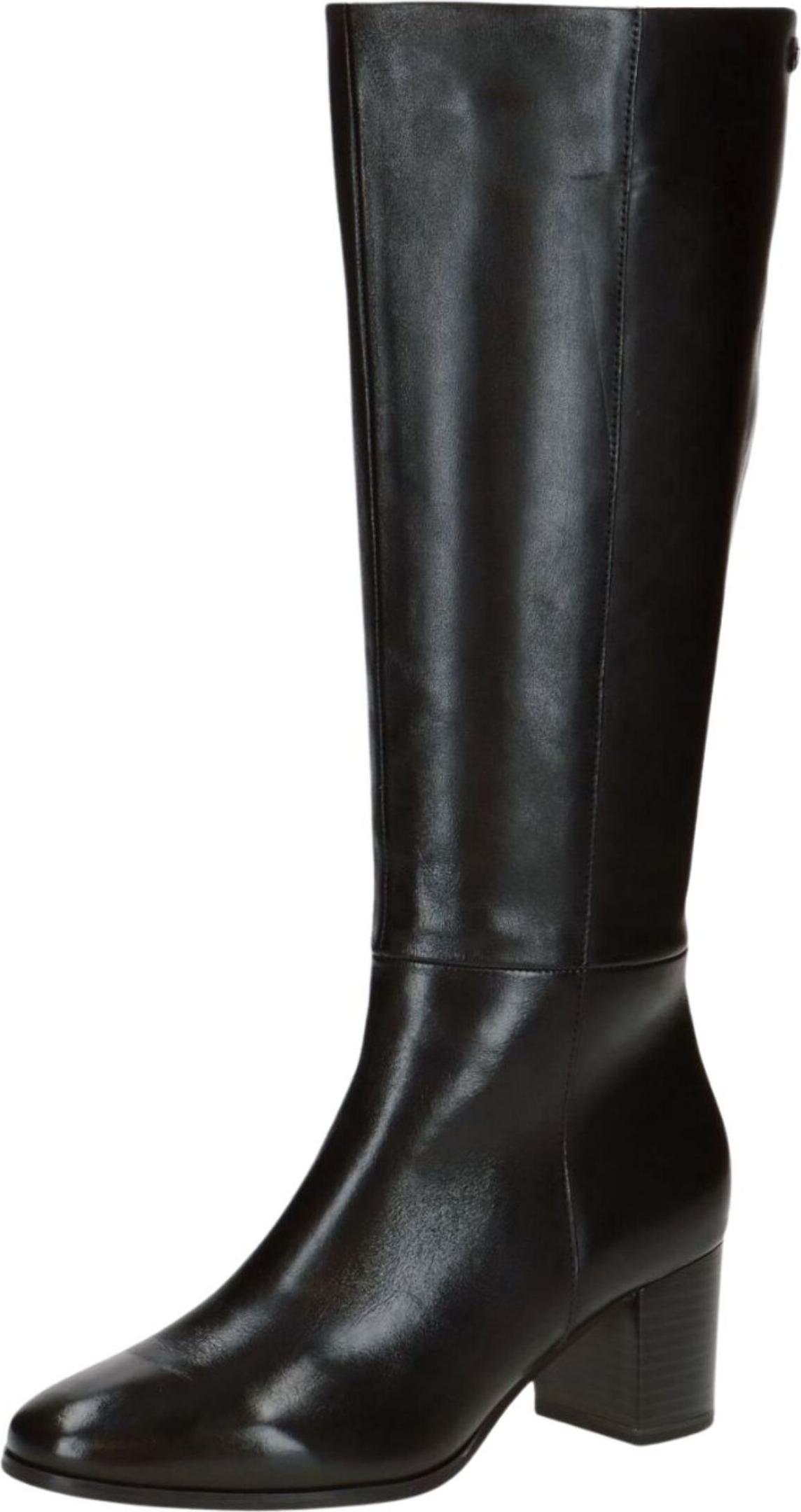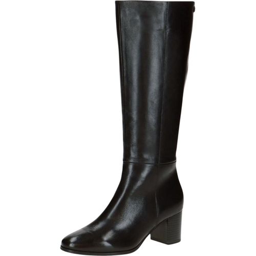 Dieser klassische Langschaftstiefel überzeugt mit seiner schlichten Eleganz und dem femininen Blockabsatz. +