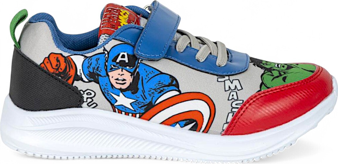 Kleine Superhelden-Fans sind mit diesen Avengers Sneakers bestens ausgestattet! Das dynamische Design mit den legendären Avengers-Elementen sorgt für einen coolen Look, während die leichte Sohle maximalen Komfort bietet.Ob für den Alltag oder als Geschenk für Marvel-Fans – diese Sneakers sind der ideale Begleiter für alle Kids, die ihre Lieblingshelden immer dabei haben möchten!Der Mix aus PU, Polyester und EVA Sohle macht die Schuhe atmungsaktiv und strapazierfähig. +