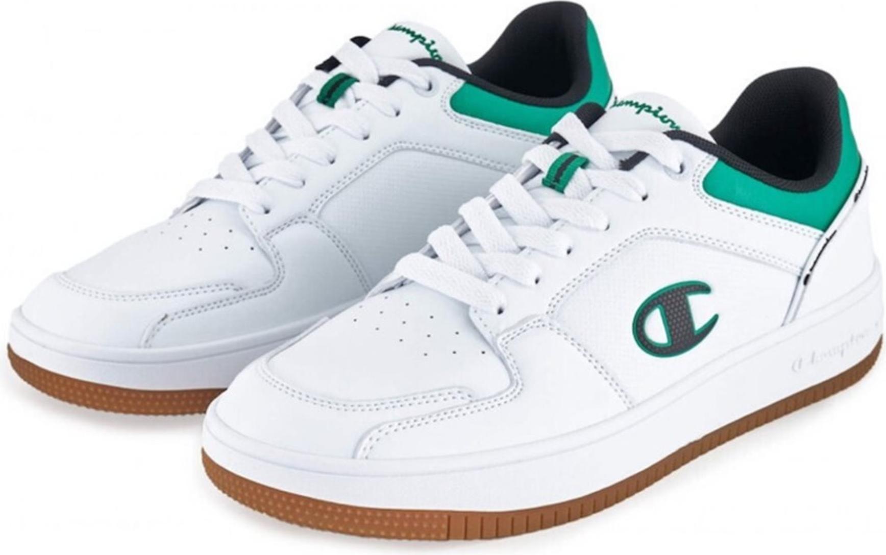 Der Champion Herren Low Sneaker RD18 2.0 in weiß-grünem Synthetik überzeugt mit sportlichem Design und hohem Tragekomfort. +