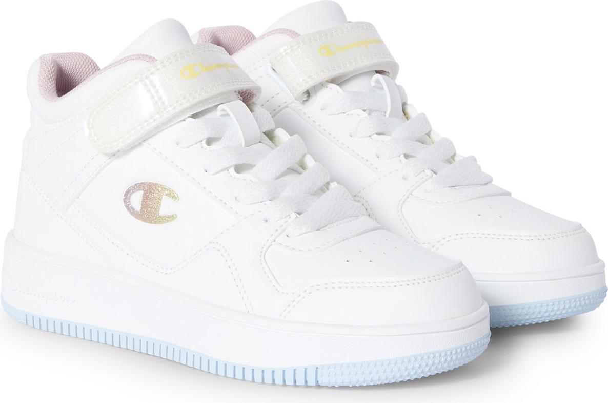 Die CHAMPION RD18 MID G PS Sneaker in Weiß verbinden klassischen Basketball-Style mit praktischem Komfort für junge Mädchen. +
