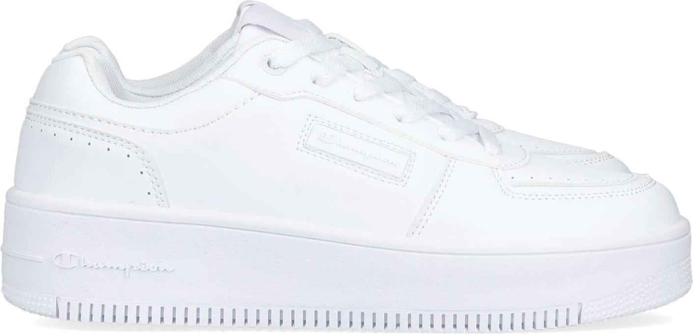 Als cleanes Essential setzt der RD18 TWIN PLAT von Champion auf ein frisches Weiß und eine markante 3 cm Plateau-Sohle. +