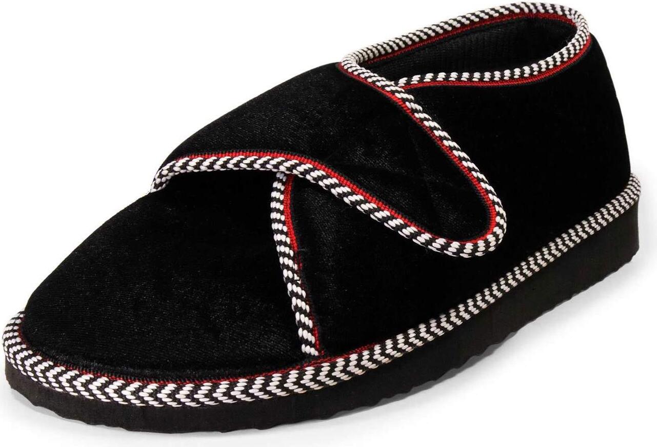 VELFIX – Hausschuhe für anspruchsvolle Füße!Weicher, schwarzer Samtstoff, innen gepolstert, wärmt die Füße. Die leichten Hausschuhe wurden mit individuell einstellbaren Klettverschlussriemen gefertigt, welche fast vollständig aufgeklappt werden können.Das Fußbett aus Naturbinsen sorgt für ein wunderbares Laufgefühl. Es bietet einen massageähnlichen Effekt und regt sanft die Fußmeridiane an, sehr angenehm mit einer positiven Wirkung auf das allgemeine Wohlbefinden. Unter dem Fußbett arbeitet die bewährte Zimt-Ingwermischung und sorgt für wohltemperierte, schweißfreie Füße. +