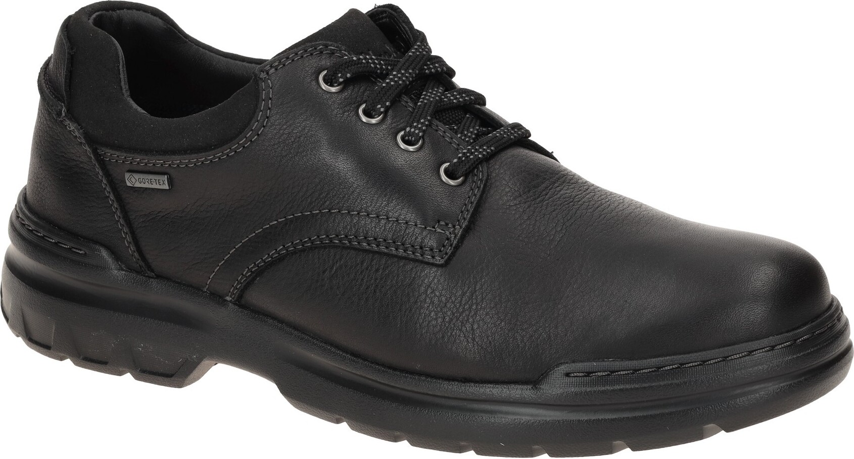 Marke: ClarksModell-Nr.: 26173464 7Modellname: ROCKIE WALK GTX - Clarks artisanArt: Herrenschuhe - bequeme Schnür HalbschuheFarbe: schwarz (black)Obermaterial: Glattleder +, Velourleder Mix (GORE-TEX =, wasserdicht)Innenfutter: Textil und EchtlederInnensohle: Echtleder Komfort FußbettWechselfußbett: herausnehmbare InnensohleLaufsohle: Gummi +, Polyurethan (PU) - extra leichtVerschluss: 4fach SchnürungAbsatz: BlockabsatzAbsatzhöhe: kleiner Absatz, ca. +