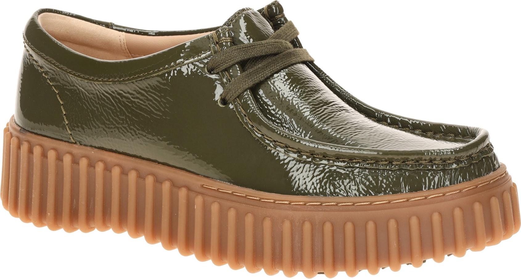 Marke: ClarksModell-Nr.: 26186668 4Modellname: TORHILL BEE - Clarks SignatureArt: Damenschuhe - bequeme Schnür- Halbschuhe, Plateau MokassinFarbe: olive-grün +, Sohle in hellbraun (dark olive)Obermaterial: Echtleder - Lack Leder (Patent)Innenfutter: Textil - weich gepolstertInnensohle: Echtleder Komfort Fußbett, contour cushionWechselfußbett: herausnehmbare InnensohleLaufsohle: Gummisohle, Plateau ca. +