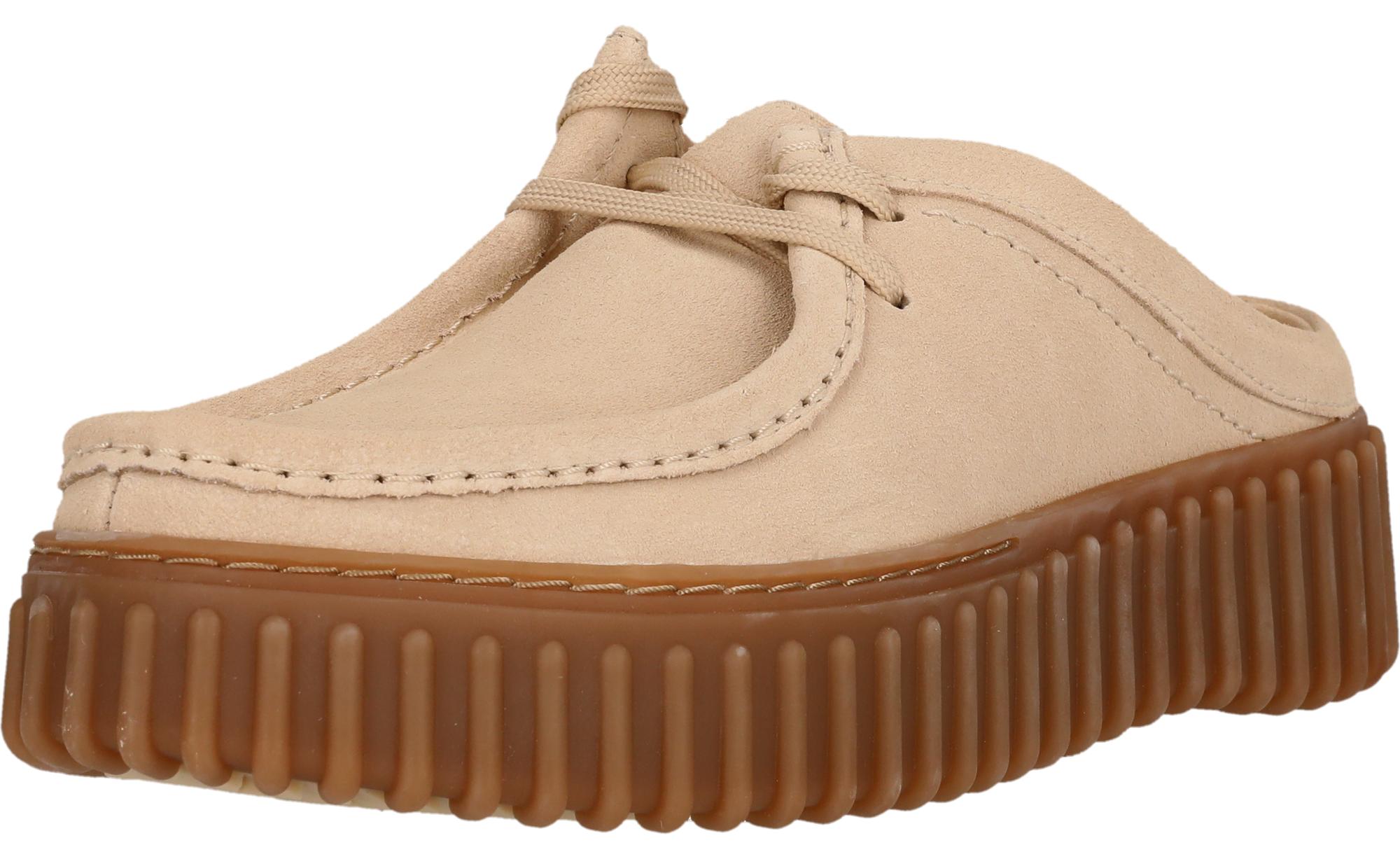 Der Torhill Mule ist aus hochwertigem Nubukleder in einem ultra-tragbaren Farbton gefertigt und vereint alle Design-Codes der Clarks-Ikone in einem einfachen Slip-on-Profil. +