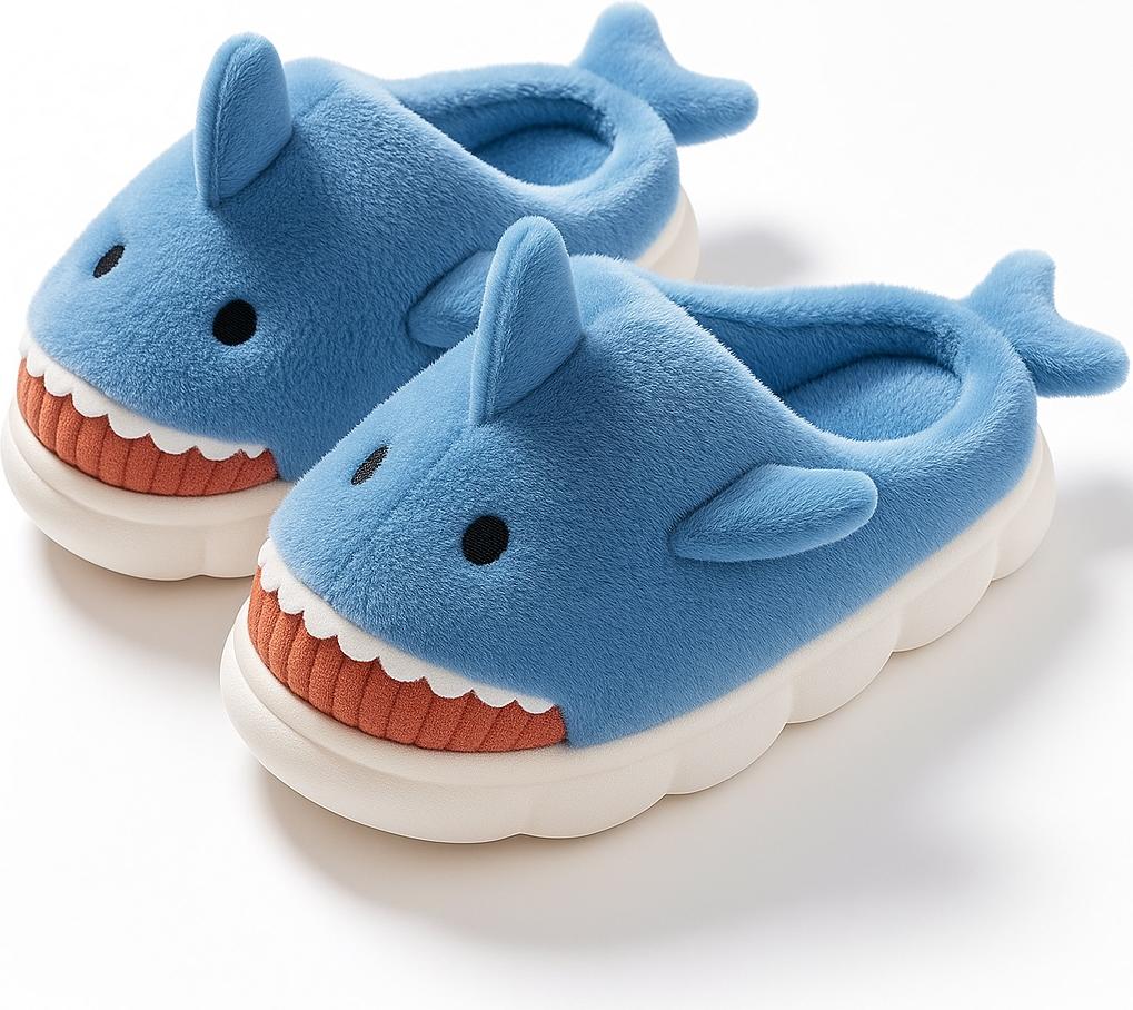 Corimori Flauschige Haifisch Pantoffeln Plüsch Hausschuhe (Packung, Geschenk) rutschfeste Sohle & weiches Innenfutter, Hai Slipper, EU Größe 34-35 (blau)