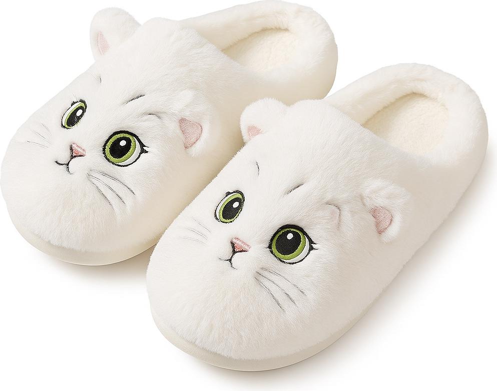 Corimori Flauschige Katzen Kätzchen Pantoffeln Plüsch Hausschuhe (Packung, Geschenk) super süße Plüsch Hausschuhe für Kinder und Erwachsene, EU Größe 36-37 (weiß)