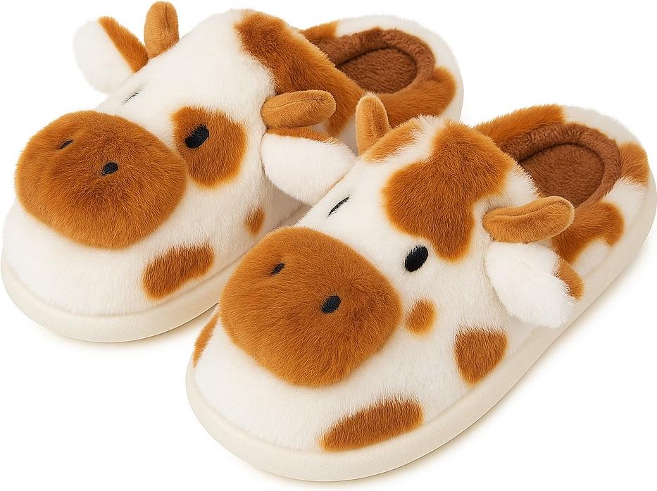 EINZIGARTIGES KUH-DESIGN – Süße Kuh-Hausschuhe mit lustigen Hörnern, Ohren &, Kuhflecken. +