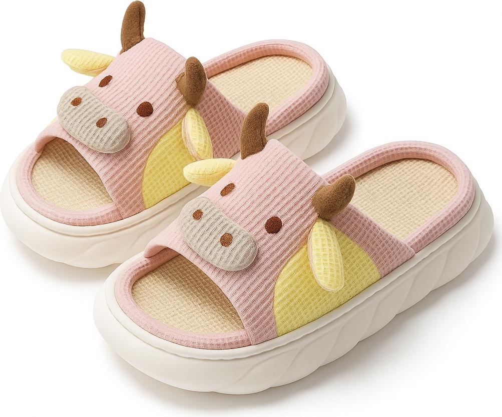 EINZIGARTIGES KUH-DESIGN – Süße Kuh-Hausschuhe mit lustigen Hörnern, Ohren &, Kuhflecken. +