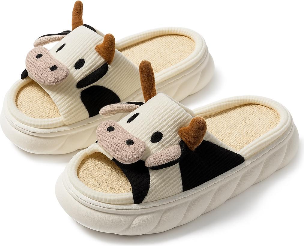 EINZIGARTIGES KUH-DESIGN – Süße Kuh-Hausschuhe mit lustigen Hörnern, Ohren &, Kuhflecken. +