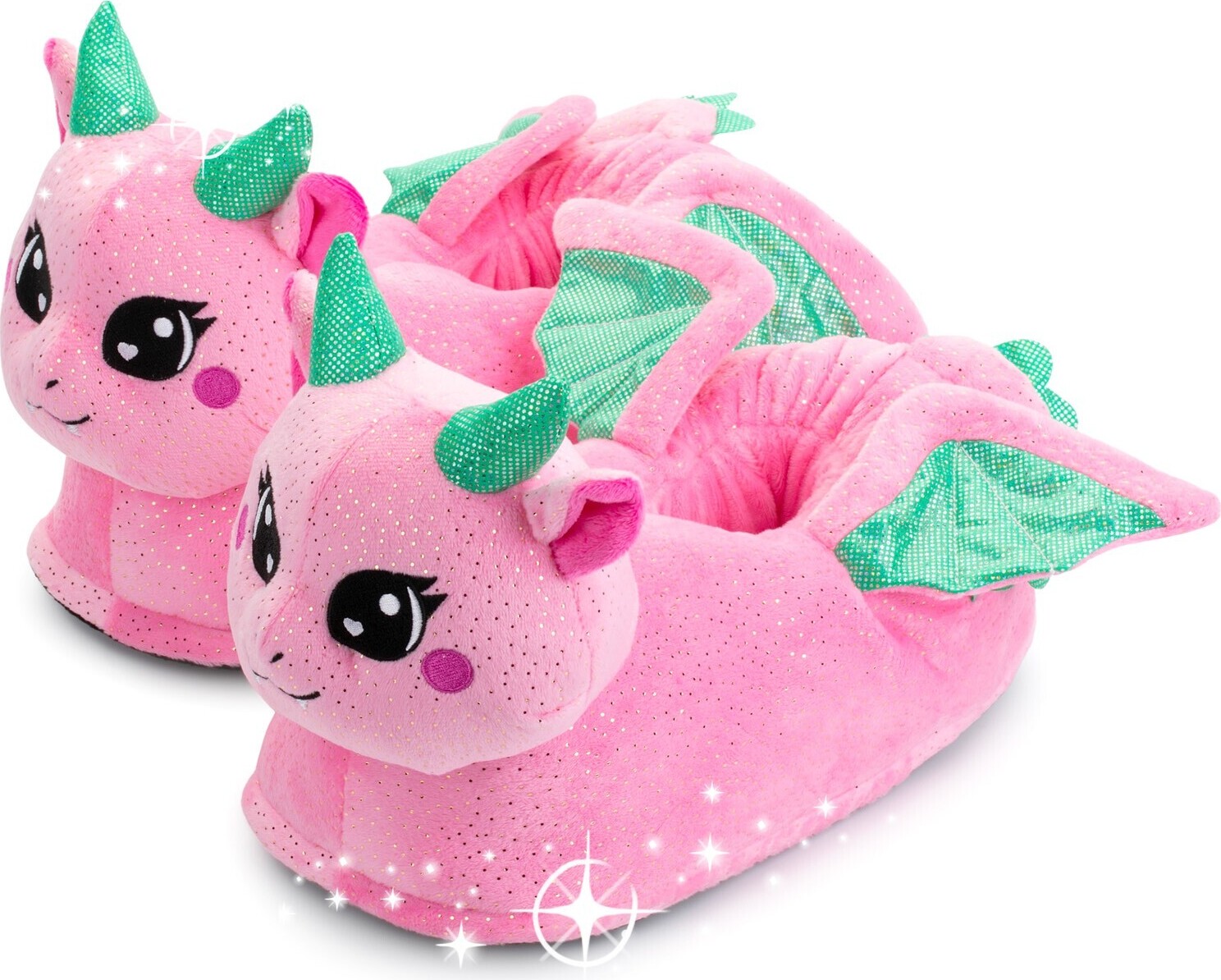 Corimori Süße Drachen Pantoffeln im Anime Kawaii-Look Plüsch Hausschuhe (Packung, Geschenk) weiche, warme Pantoffeln, EU Einheitsgröße 34-44, Glimmer der Drache (rosa)
