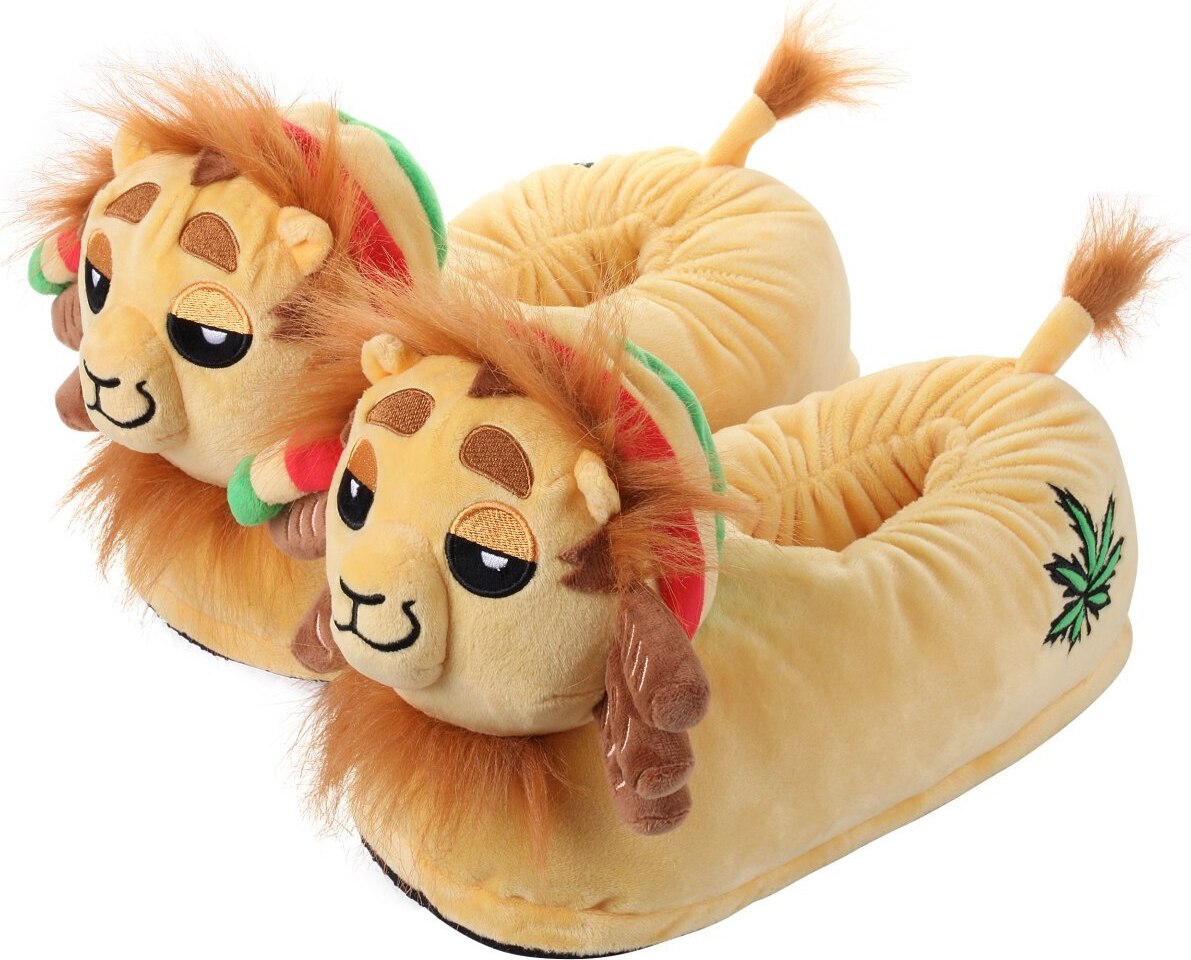 Corimori Tier Pantoffeln für Erwachsene Einheitsgröße 34-44 Plüsch Hausschuhe (Packung, Geschenk) EU Einheitsgröße 34-44, Benji der Löwe, für Kinder und Erwachsene (braun/bunt/gelb)