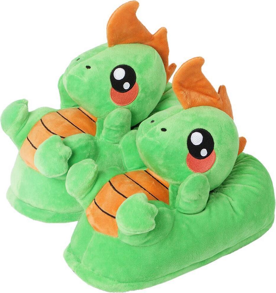 Corimori Tier Pantoffeln für Erwachsene Einheitsgröße 34-44 Plüsch Hausschuhe (Packung, Geschenk) EU Einheitsgröße 34-44, Dinosaurier Byte, für Kinder und Erwachsene (grün)