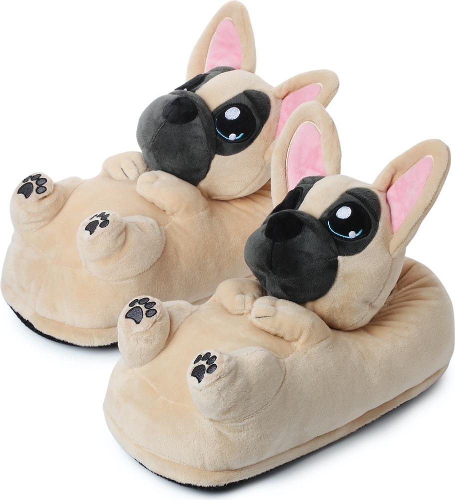 Corimori Tier Pantoffeln für Erwachsene Einheitsgröße 34-44 Plüsch Hausschuhe (Packung, Geschenk) EU Einheitsgröße 34-44, Frenchie Zorro, für Kinder und Erwachsene (beige/braun)