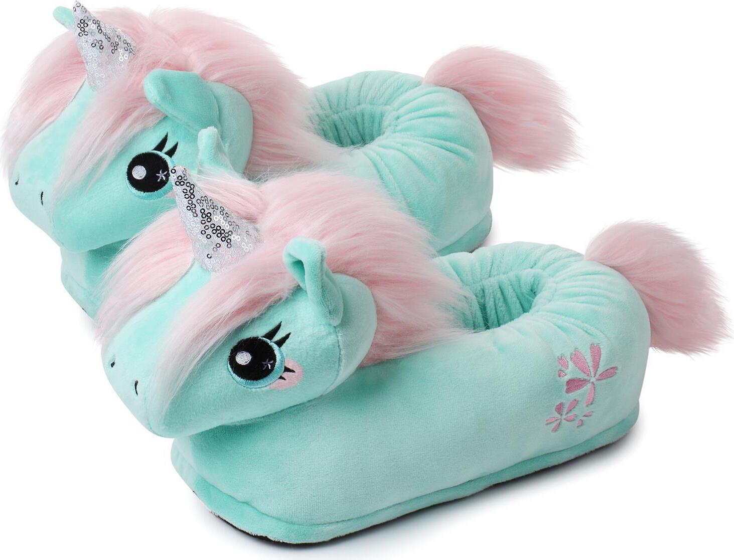 Corimori Tier Pantoffeln für Erwachsene Einheitsgröße 34-44 Plüsch Hausschuhe (Packung, Geschenk) EU Einheitsgröße 34-44, Jade das Einhorn, für Kinder und Erwachsene ("Jade" das Einhorn (türkis))