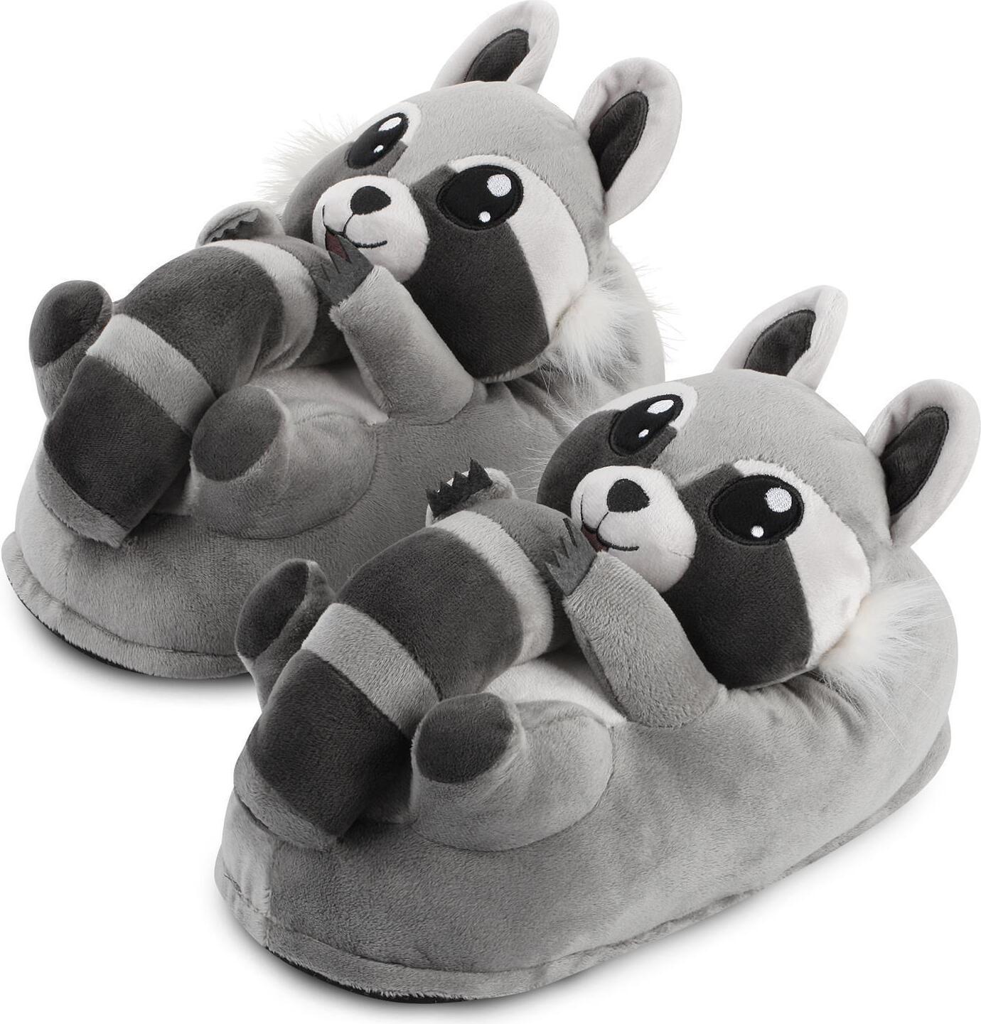 Corimori Tier Pantoffeln für Erwachsene Einheitsgröße 34-44 Plüsch Hausschuhe (Packung, Geschenk) EU Einheitsgröße 34-44, Waschbär Lina, für Kinder und Erwachsene (grau/weiß)