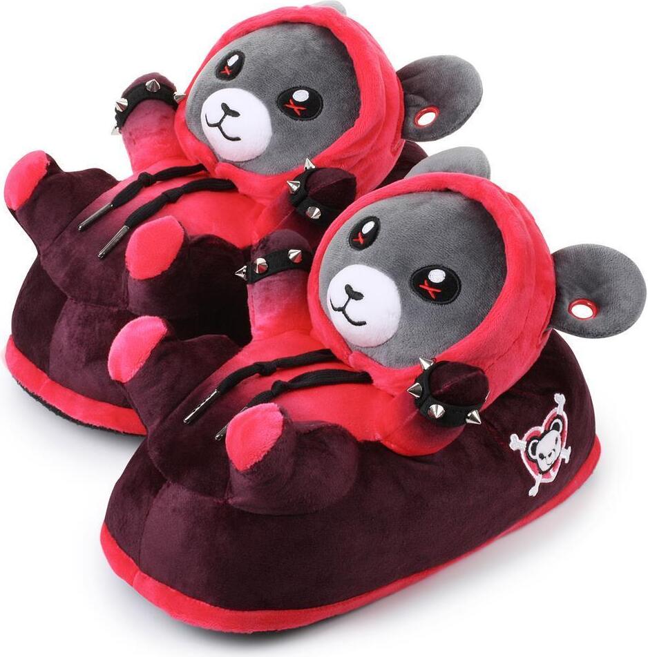 Corimori Tier Pantoffeln für Kinder Einheitsgröße 25-33,5 Plüsch Hausschuhe (Packung, Geschenk) EU Einheitsgröße 25-33,5 Punk Teddy Ember für Kinder, Jungen, Mädchen (grau/rot/schwarz)