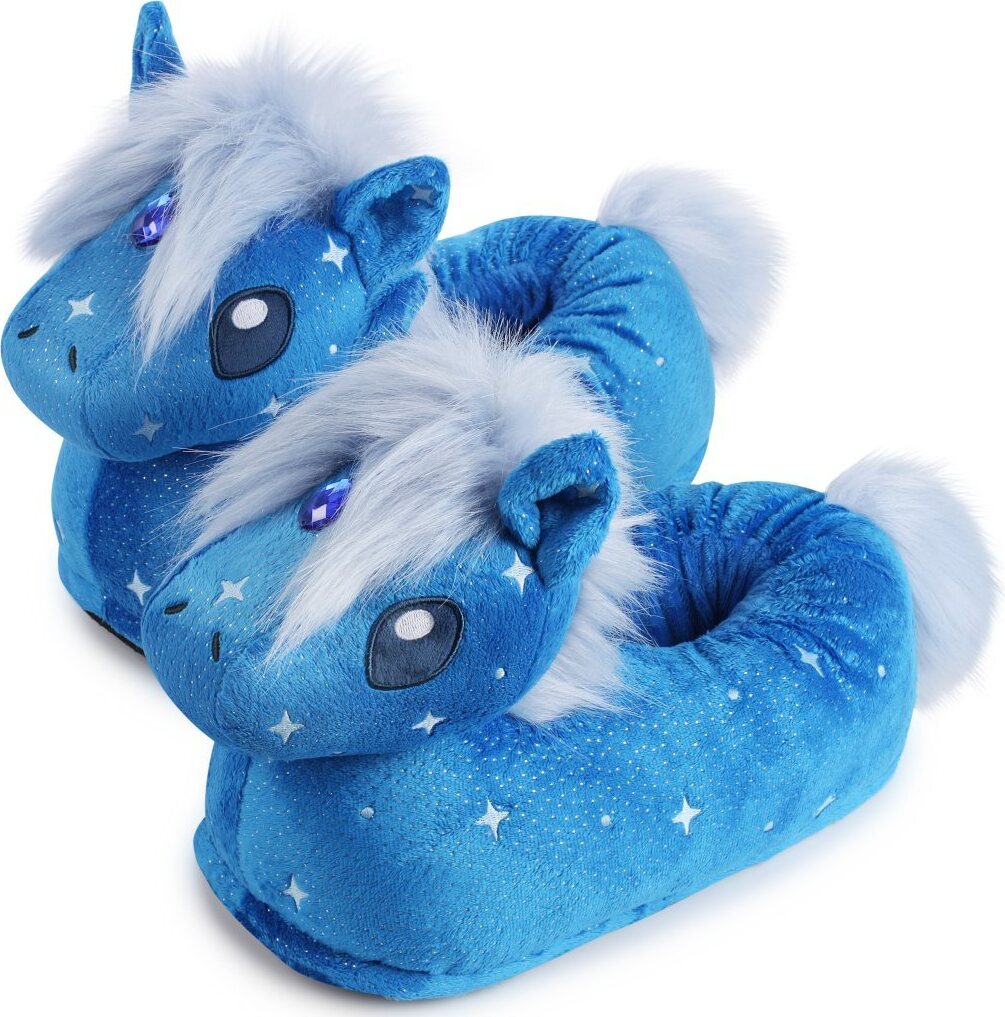 Corimori Tier Pantoffeln für Kinder Einheitsgröße 25-33,5 Plüsch Hausschuhe (Packung, Geschenk) EU Einheitsgröße 25-33,5 Sky das magische Pferd für Kinder, Slipper (blau)