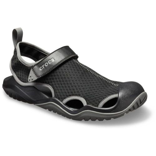 Crocs Swiftwater Mesh Deck Sandal Sandale Badesandale, Sommerschuh mit Klettverschluss (grau/schwarz)