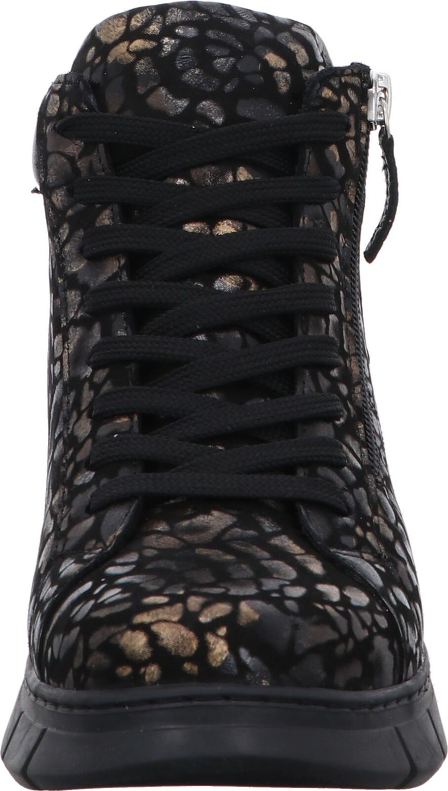 Gemini Damen Sneaker schwarz 340240-86-009ProdukteigenschaftenObermaterial: LederFarbangabe des Herstellers: schwarzFutter: TextilInnensohle: Leder, herausnehmbarLaufsohle: flexibel, gummiertVerschluss: Schnürung, Reißverschluss Schafthöhe: 9,5 cmSchaftweite: 27,5 cmPassform: normal Sonstiges: nicht wasserdicht