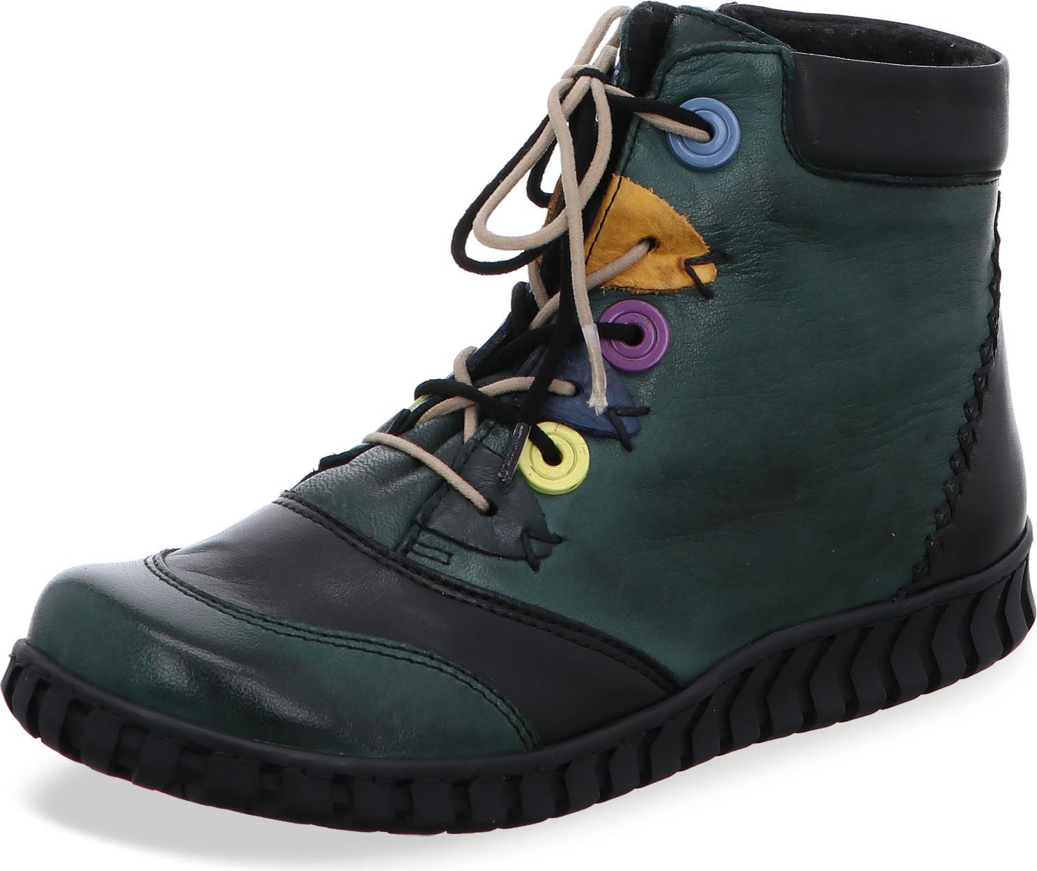 Gemini Damen Schnürboot grün 033065-02-790ProdukteigenschaftenObermaterial: LederFarbangabe des Herstellers: grün/schwarzFutter: TextilInnensohle: Textil, herausnehmbarLaufsohle: flexibel, gummiertVerschluss: Schnürung, ReißverschlussSchafthöhe: 11 cmSchaftweite: 25 cmPassform: normalSonstiges: nicht wasserdicht