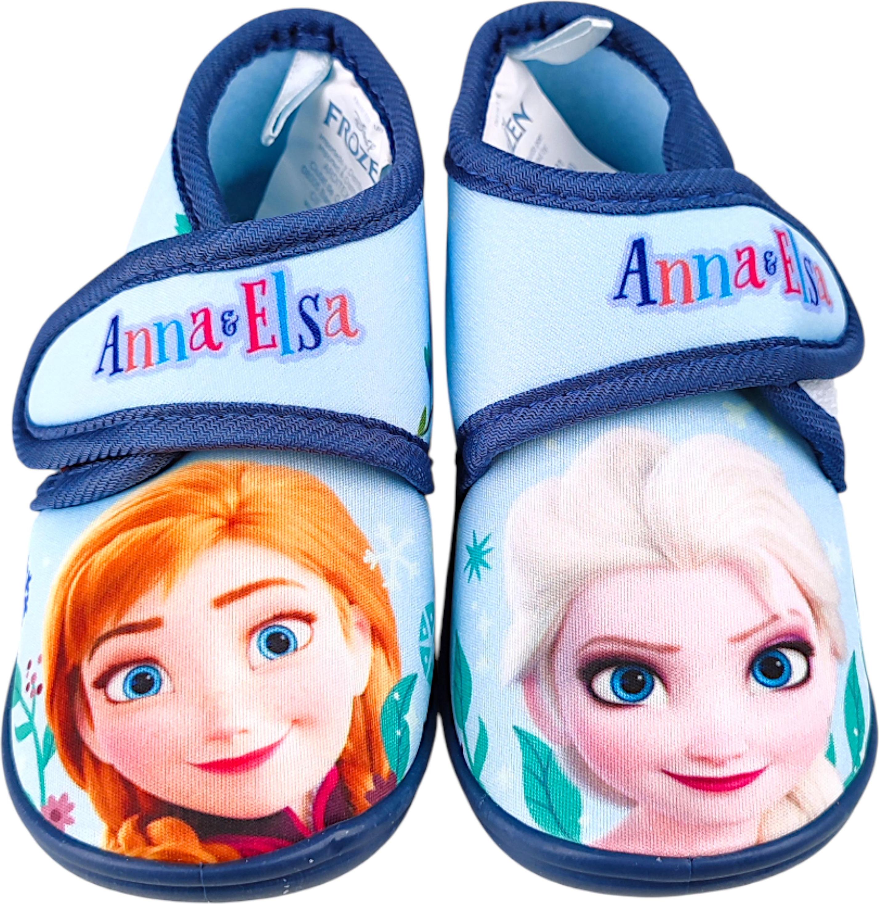 Disney Frozen Elsa & Anna Hausschuh Mädchen Pantoffeln mit Klettverschluss Gr. 22-27 (blau)
