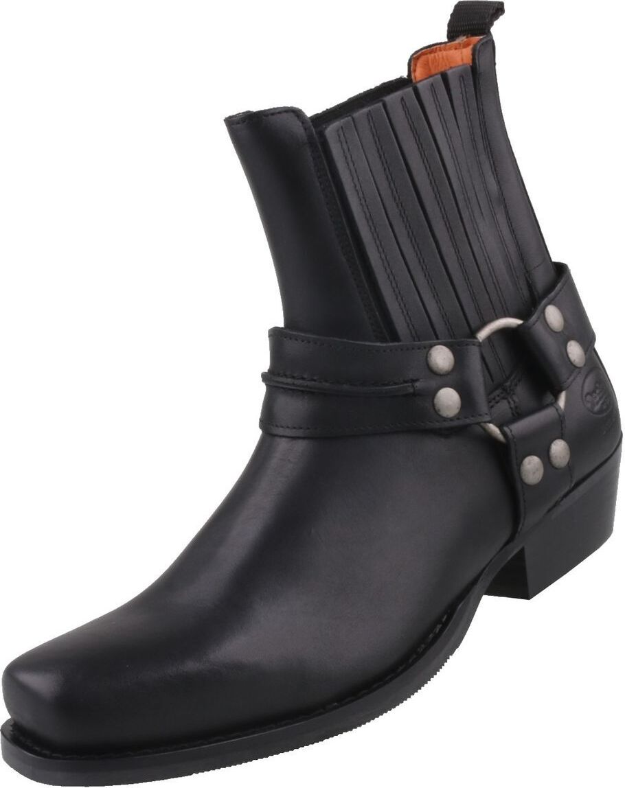 Damen Biker Stiefelette SchwarzKlassische Biker Stiefelette aus Nappaleder mit typischem Leder-Stiefelband um den Schaft. +