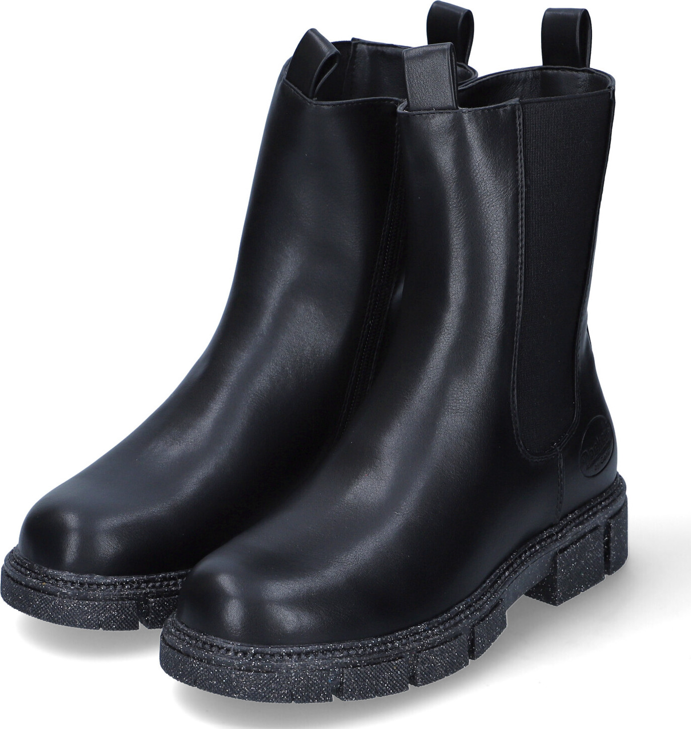 Dockers by Gerli Mädchen Chelsea Boots/ Stiefeletten Schwarz Textil-Synthetik-Mix - Reißverschluss - breiter Elastikeinsatz - zwei Anziehlaschen - warmes Fleecefutter - verstärkter Fersenbereich - Ziernähte - gepolsterte Decksohle - robuste, rutschhemmende Profillaufsohle mit Glitzer - stabiler Blockabsatz - Schafthöhe: ca. +