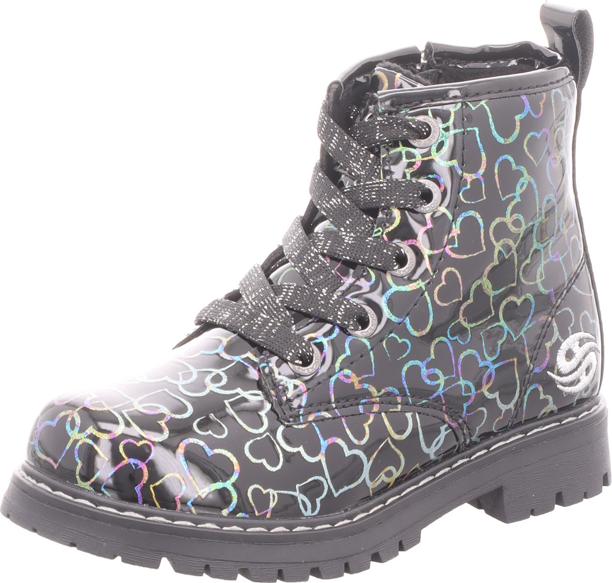 Ein innenliegender Reißverschluss sorgt für ein schnells An- und Ausziehen, wobie die Schnürung für perfekten Sitz sorgt. Eine trendstarke Stiefelette die Sie in den Größen 28,29,30, 31, 32, 33, 34 und 35 erhalten.Obermaterial: Lack-SynthetikInnenmaterial: textiles WarmfutterDecksohle: textiles WarmfutterVerschluss: Schnürung +, ReißverschlussAbsatz: Block ca.