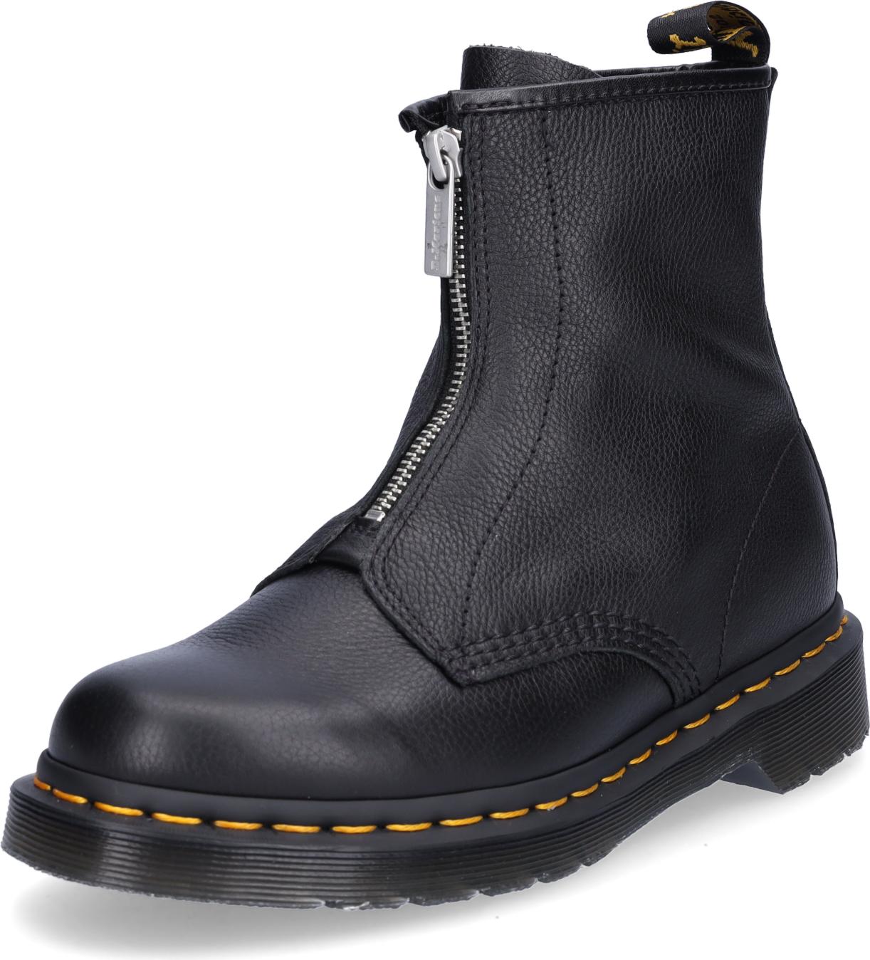 Martens ist ein klassischer Boot — neu interpretiert mit weichem, feinkörnigem Virginia-Leder, das sich bereits beim ersten Tragen geschmeidig anfühlt. Typisch sind die markante gelbe Rahmennaht, die robuste, profilierte AirCushion-Sohle und die stabile Goodyear-Rahmennähung. Das Innenfutter ist eine Kombination aus Leder und Textil — für Komfort und Atmungsaktivität. ReißverschlussZuglasche gelbe Rahmennaht