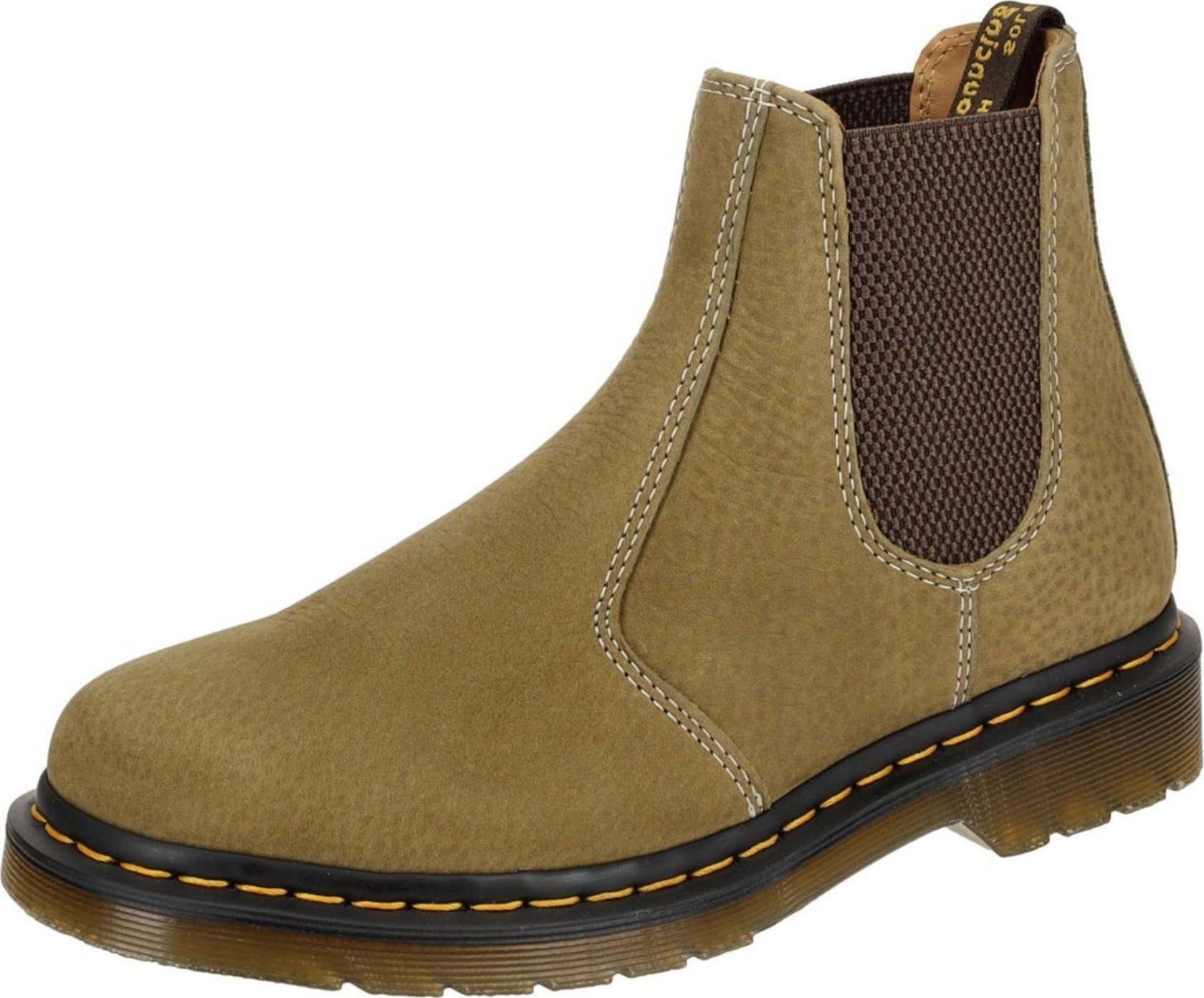 MartensModell-Nr.: 31697357Modellname: 2976Art: UNISEX Damen- und Herrenschuhe, Chelsea-Boots / StiefelFarbe: grün +, braun +, schwarz +, Naht in gelb (muted olive)Obermaterial: Echtleder - Nubuck (Tumbled Nubuck +, E.H. Suede)Innenfutter: EchtlederInnensohle: Kork FußbettWechselfußbett: nicht herausnehmbare InnensohleLaufsohle: GummisohleVerschluss: Gummizug - ohne VerstellmöglichkeitAbsatz: BlockabsatzAbsatzhöhe: kleiner Absatz, ca.