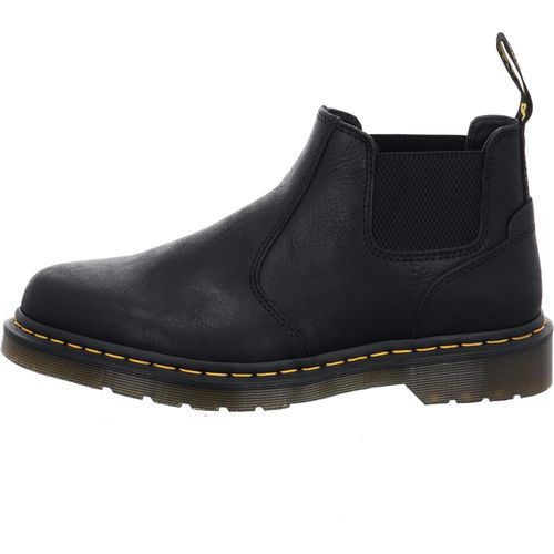 MartensModell-Nr.: 40587001Modellname: 2976 LOArt: UNISEX Damen- und Herrenschuhe, Chelsea-Boots StiefeletteFarbe: schwarz +, Naht in gelb (black)Obermaterial: Echtleder - Glattleder (AR Rogue)Innenfutter: Textil und SynthetikInnensohle: Synthetik FußbettWechselfußbett: nicht herausnehmbare InnensohleLaufsohle: GummisohleVerschluss: Gummizug - ohne VerstellmöglichkeitAbsatz: BlockabsatzAbsatzhöhe: kleiner Absatz, ca. 1,5cmSchafthöhe: Knöchelhoch, ca.