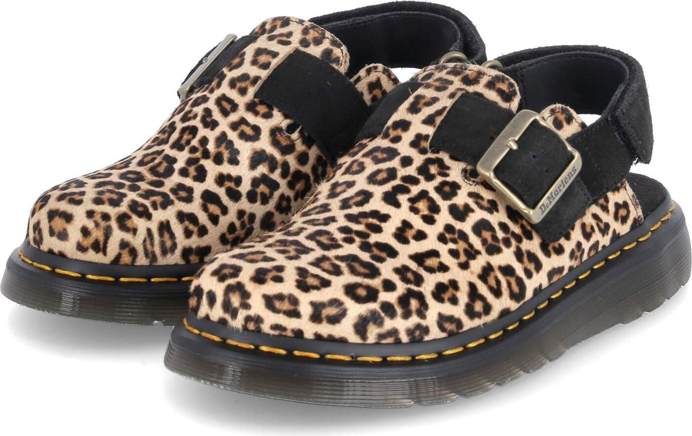 MartensModell-Nr.: 41088200Modellname: JORGE IIArt: Damen Pantoletten - Pantolette, ClogsFarbe: hellbraun +, schwarz +, Rahmennaht in gelb (light tan / black)Obermaterial: Echtleder - Velour - Rauhleder (Mini Leopard Sport Hair on Suede)Innenfutter: EchtlederInnensohle: Echtleder - FußbettWechselfußbett: nicht herausnehmbare InnensohleLaufsohle: GummisohleVerschluss: Klettverschluss +, SteckschnalleAbsatz: flach - kein AbsatzSchuhform: rundGrößenangabe: fällt normal ausWeitenangabe: G - normal Weiteinterne Artikelnummer für Ihre Rückfragen: 276-36-0001