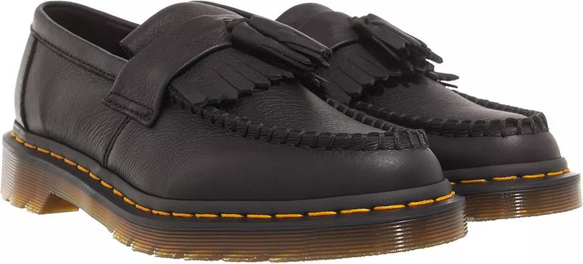 Dr. Martens Black Virginia Adrian Mokassin Chunky Slipper, Schlupfschuh mit modischer Tassel - schmale Form (schwarz)