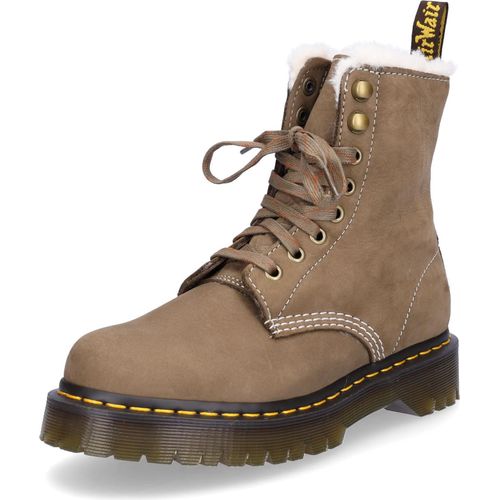 Martens Damen Schnürboot 1460 Pascal Bex FL aus Leder in Dunkel Khaki mit Gummisohle, Blockabsatz und warmen Futter aus kuscheligem Textil