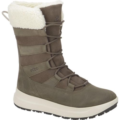 Marke: EccoModell-Nr.: 42021355779Modellname: SOLICE - WOMEN WP PL 200gArt: Damen Stiefeletten - Winterstiefelette, Warmfutter StiefelFarbe: dunkelgrau +, grau-grün +, Sohle in creme-weiß +, schwarz (dark clay/dark clay)Obermaterial: Echtleder - Nubuck (PFC-free Waterproof =, wasserdicht)Innenfutter: Warmfutter, Kunstfell +, Primaloft 200g IsolierungInnensohle: Warmfutter, KunstfellWechselfußbett: herausnehmbare InnensohleLaufsohle: Gummi +, Polyurethan (PU) - extra leicht, Gummianteil aus recycelten MaterialienVerschluss: 5fach SchnürungAbsatz: flach - kein AbsatzSchafthöhe: Wadenhoch, ca. +