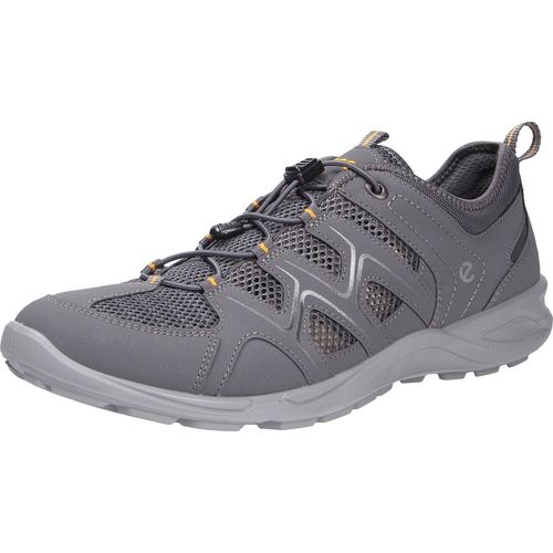 Marke: EccoModell-Nr.: 82577450869Modellname: TERRACRUISE LT - LiteArt: Herrenschuhe - Sneakers - HalbschuheFarbe: dunkelgrau +, gelb +, Sohle in grau (magnet)Obermaterial: Synthetik +, Textil (atmungsaktive Netzstruktur)Innenfutter: Textil / Mesh - atmungsaktivInnensohle: Textil FußbettWechselfußbett: herausnehmbare InnensohleLaufsohle: Polyurethan (PU) - extra leicht und flexibelVerschluss: Gummizug SchnellverschlussAbsatz: flach - kein AbsatzSchuhform: rundGrößenangabe: fällt normal ausWeitenangabe: G - normal Weiteinterne Artikelnummer für Ihre Rückfragen: 141-21-0027