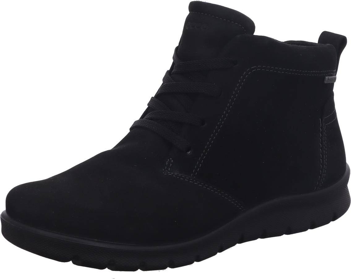 Marke: EccoModell-Nr.: 21558302001Modellname: BABETT BOOT - low cut laceArt: Damen Stiefeletten - Winterstiefelette, Schnürstiefel / BootsFarbe: schwarz (black)Obermaterial: Echtleder - Nubuck (GORE-TEX =, wasserdicht)Innenfutter: Warmfutter, 55% Wolle +, 45% Polyester / KunstfellInnensohle: Filz FußbettWechselfußbett: herausnehmbare InnensohleLaufsohle: Polyurethan (PU) - extra leicht und flexibelVerschluss: 4fach SchnürungAbsatz: flach - kein AbsatzSchafthöhe: Knöchelhoch, ca. +