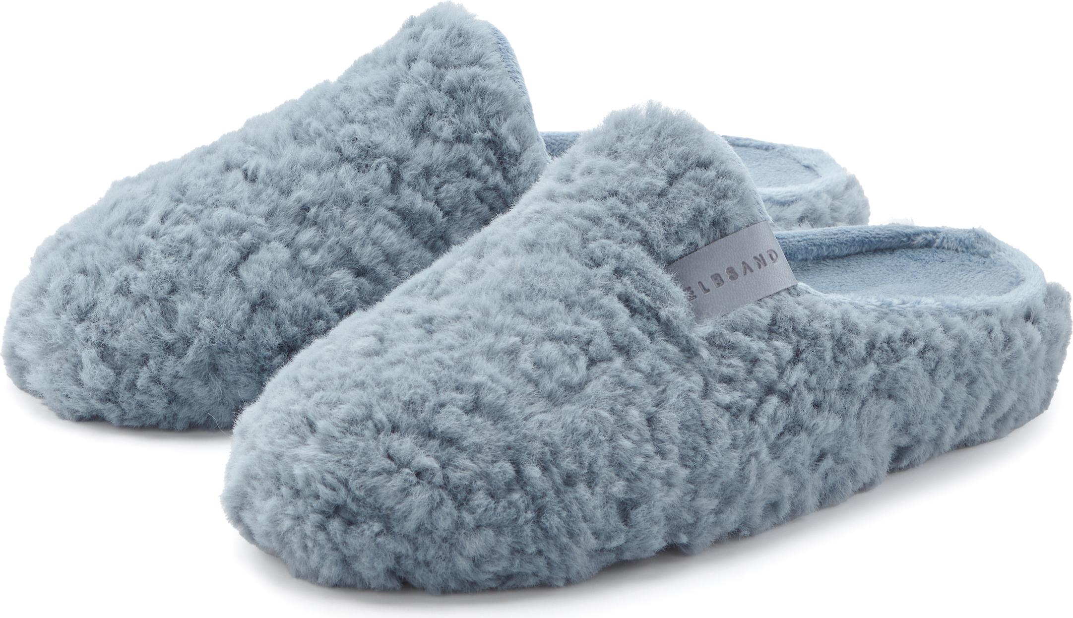 Elbsand Hausschuh Pantolette, Pantoffel, Mule, Sandale, kuscheliges Fellimitat (blau)