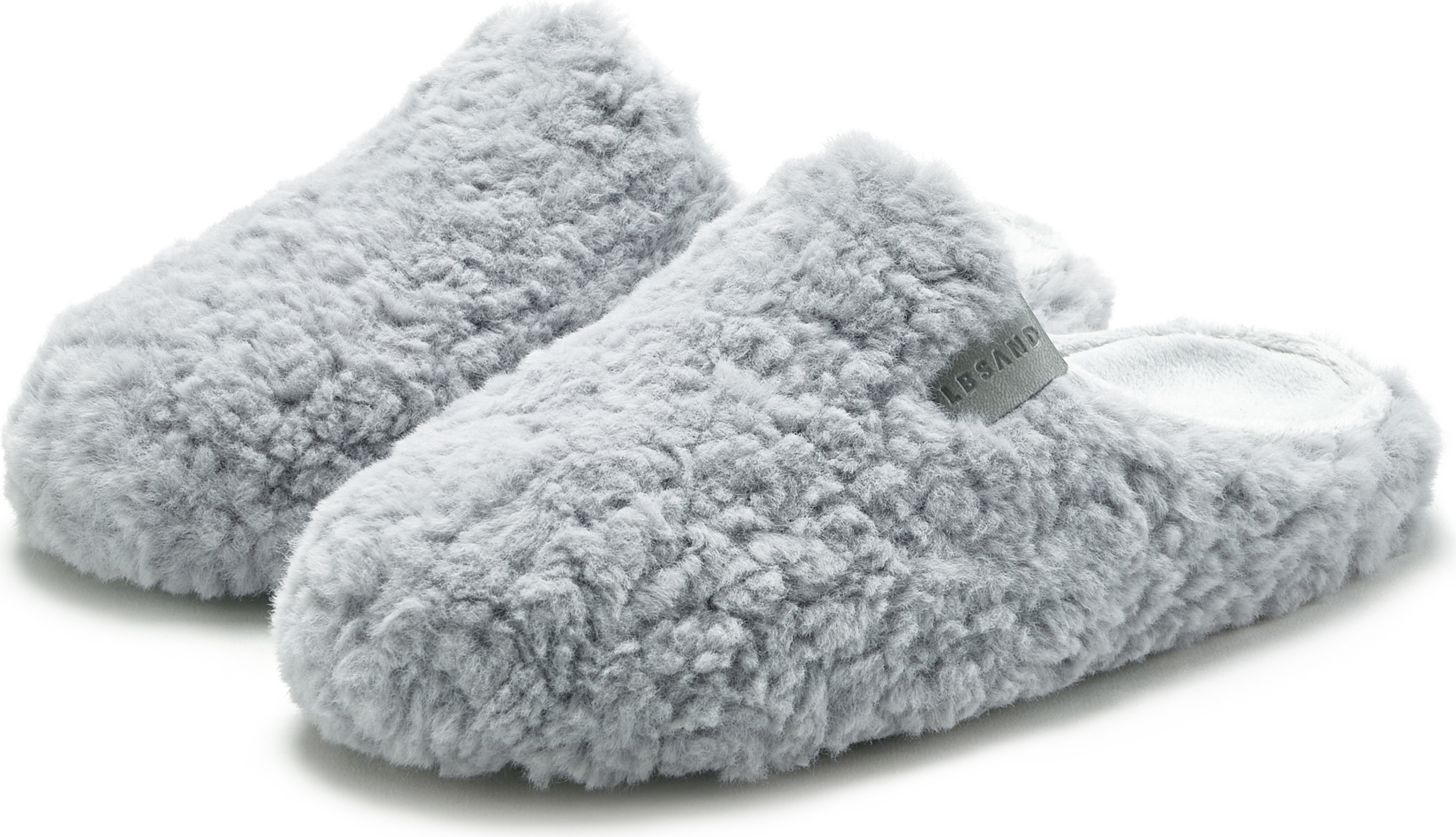 Elbsand Hausschuh Pantolette, Pantoffel, Mule, Sandale, kuscheliges Fellimitat (grau)