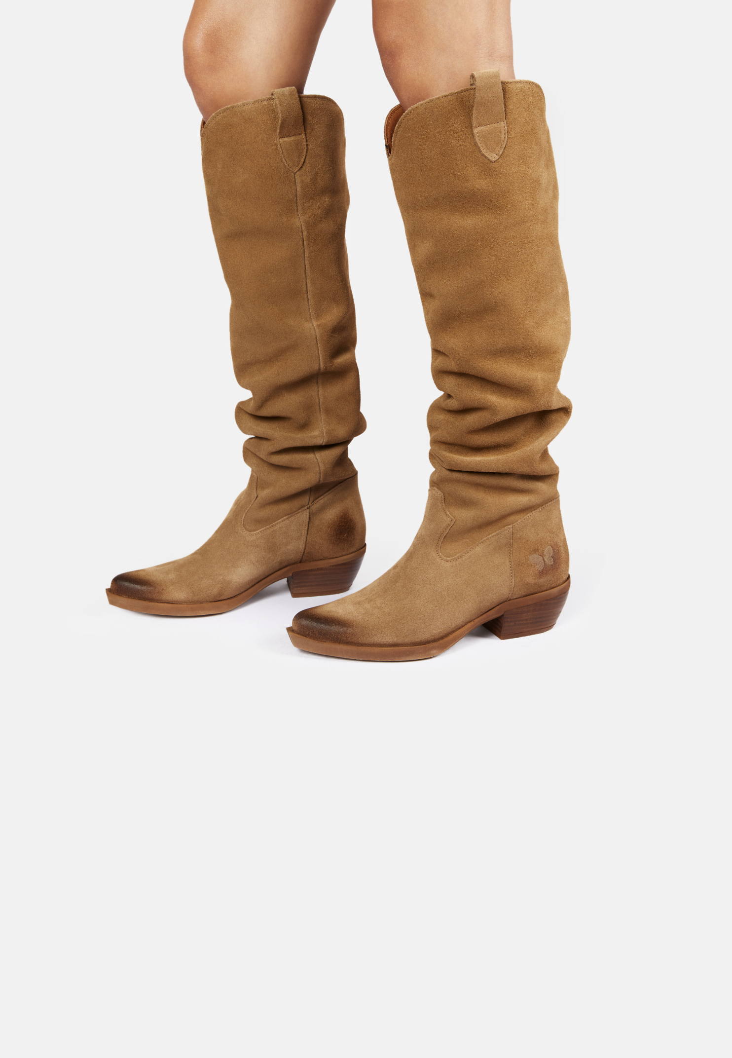 Mit fachmännischer Handwerkskunst verkörpern diese Stiefel die Essenz des westlichen Erbes. Die mittlere Wadenhöhe verleiht einen Hauch von Dramatik, während das Wildleder den rustikalen Charme verstärkt.