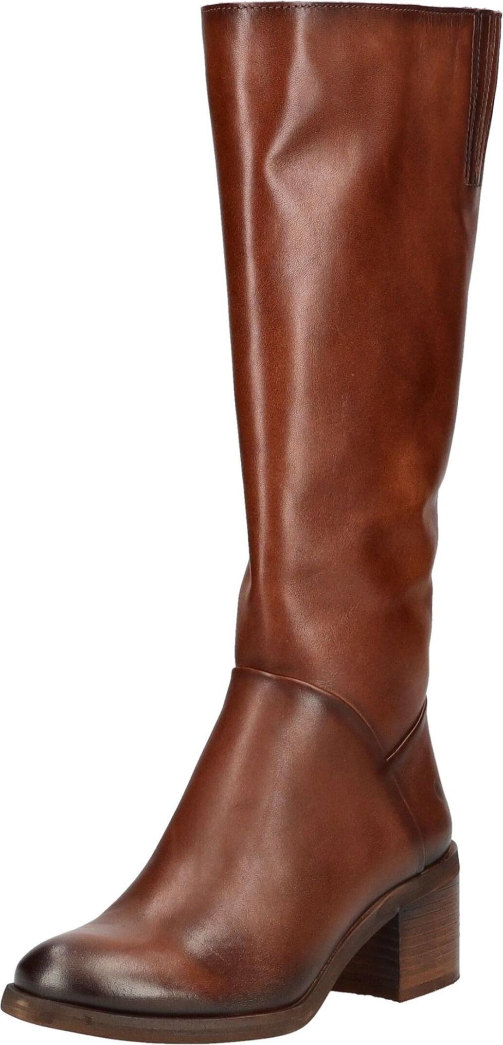 MIRA D946 Stylische hohe Stiefel mit niedrigem Absatz, gefertigt aus echtem weichem schwarzem Leder. +