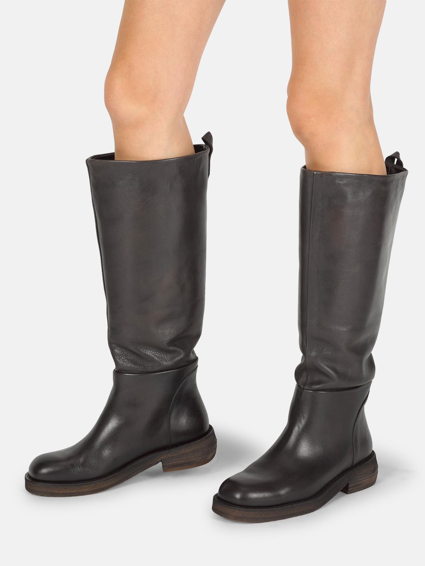 Der CATRIN T012 von Felmini ist ein Zwei-in-Eins-Lederstiefel, der für mühelosen Stil sorgt. +