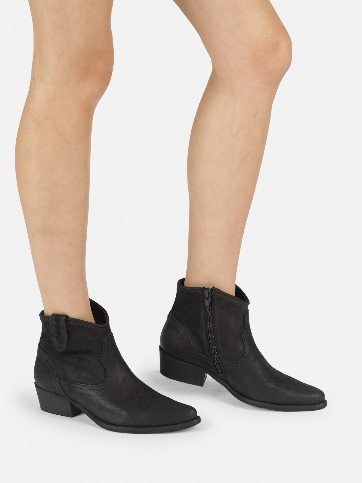 Felmini Stiefelette Veloursleder . Cowboy Stiefelette (schwarz)