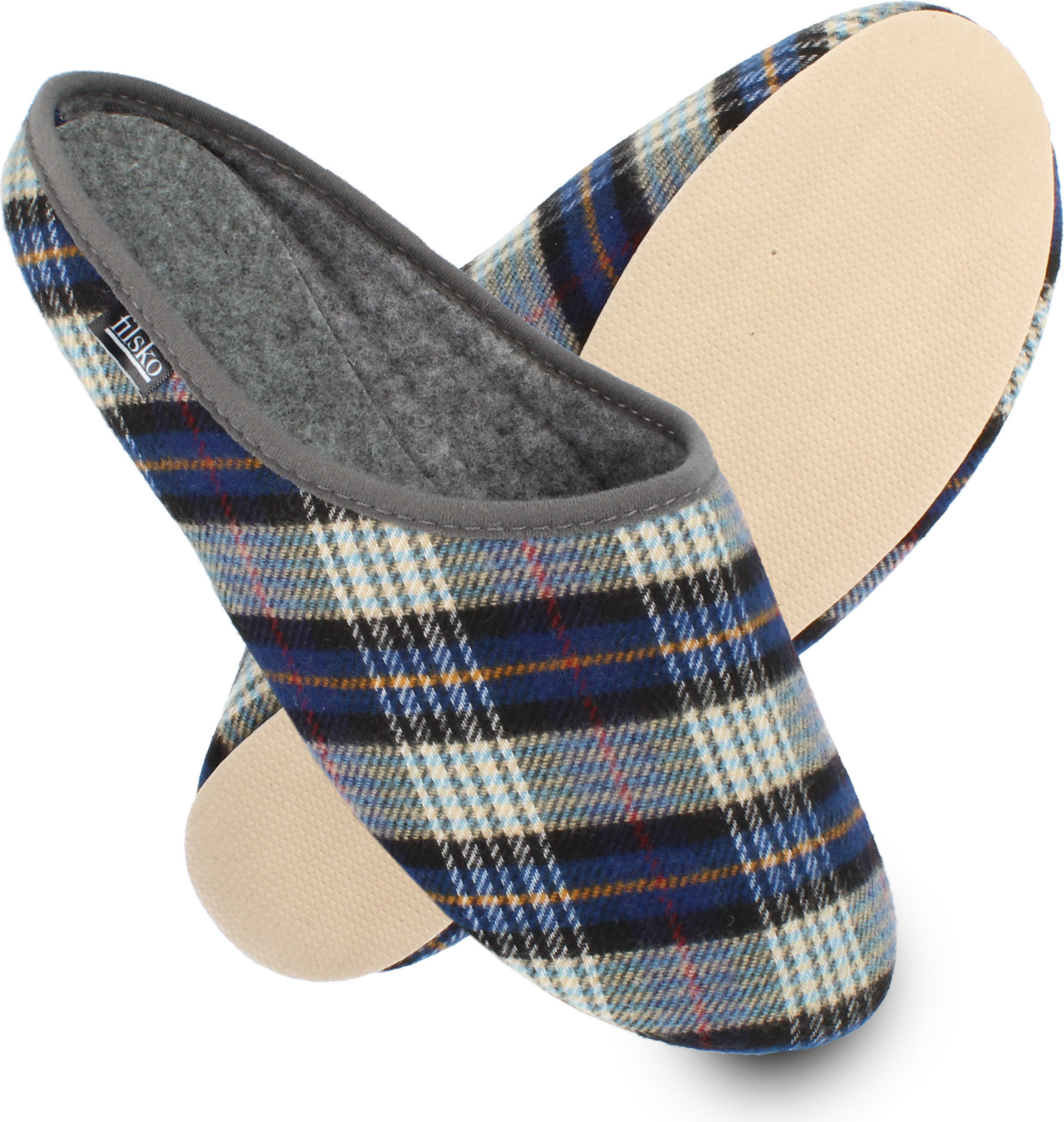 filsko Abisko kariert Damen Herren Hausschuh Filzpantoffeln, Leichtgewicht, Gästehausschuhe, Slip-On, Gummisohle (blau)