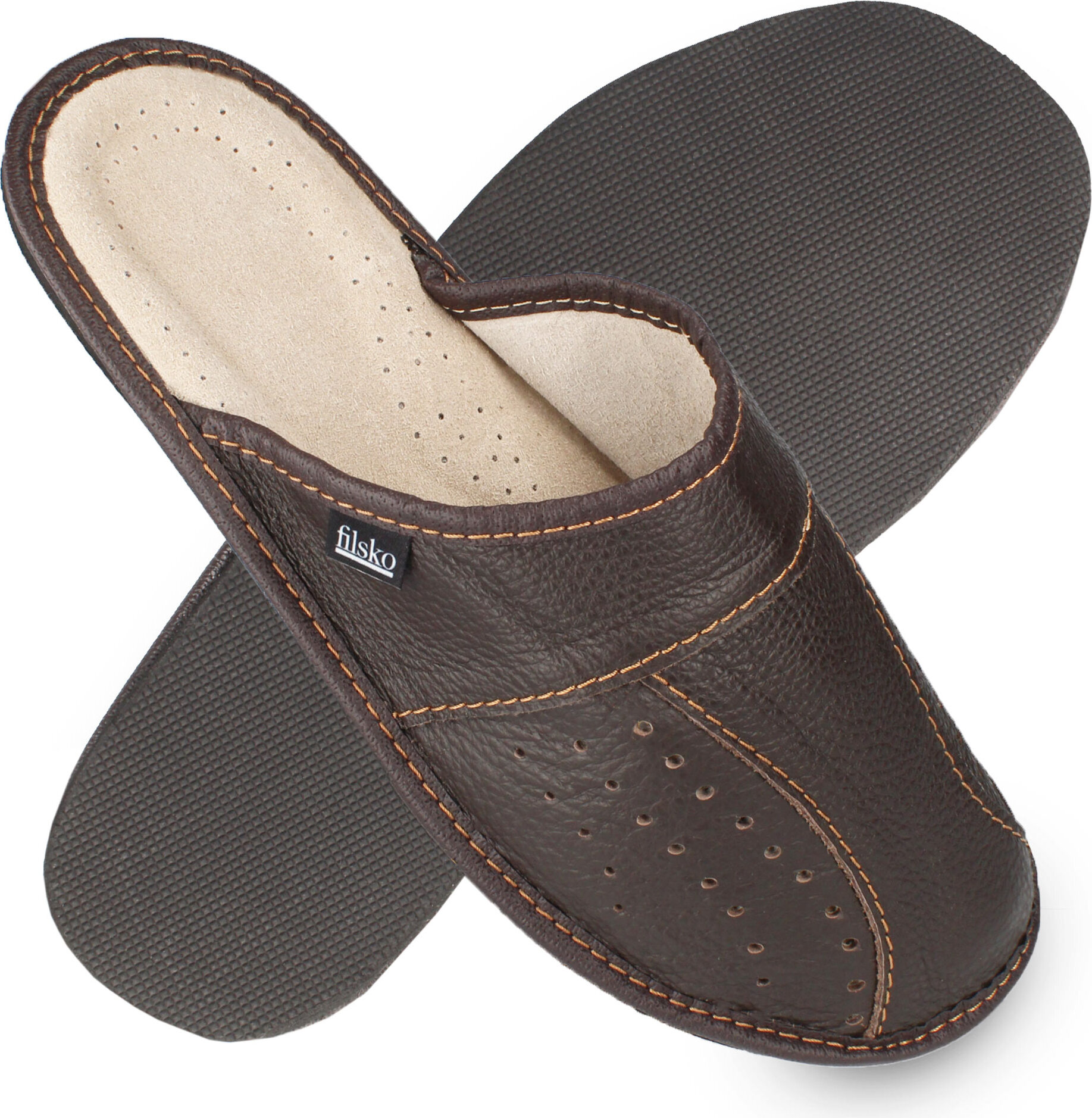 filsko Danzig Elegante Herren Pantoffeln aus Rindleder Hausschuh ungefüttert, oder mit Schafwolle gefüttert, bis Schuhgröße 50! (Sommer)